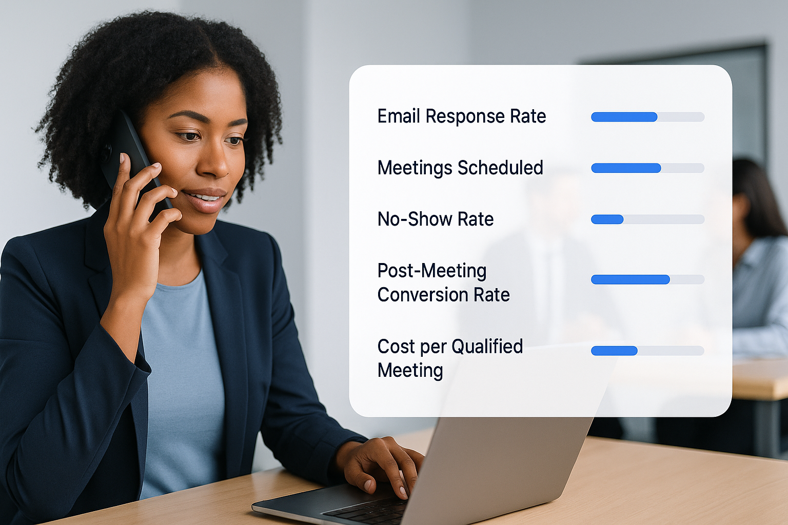 Taux de réponse, taux de rendez-vous obtenus, taux de no-show, taux de conversion post-rendez-vous, coût par lead qualifié.